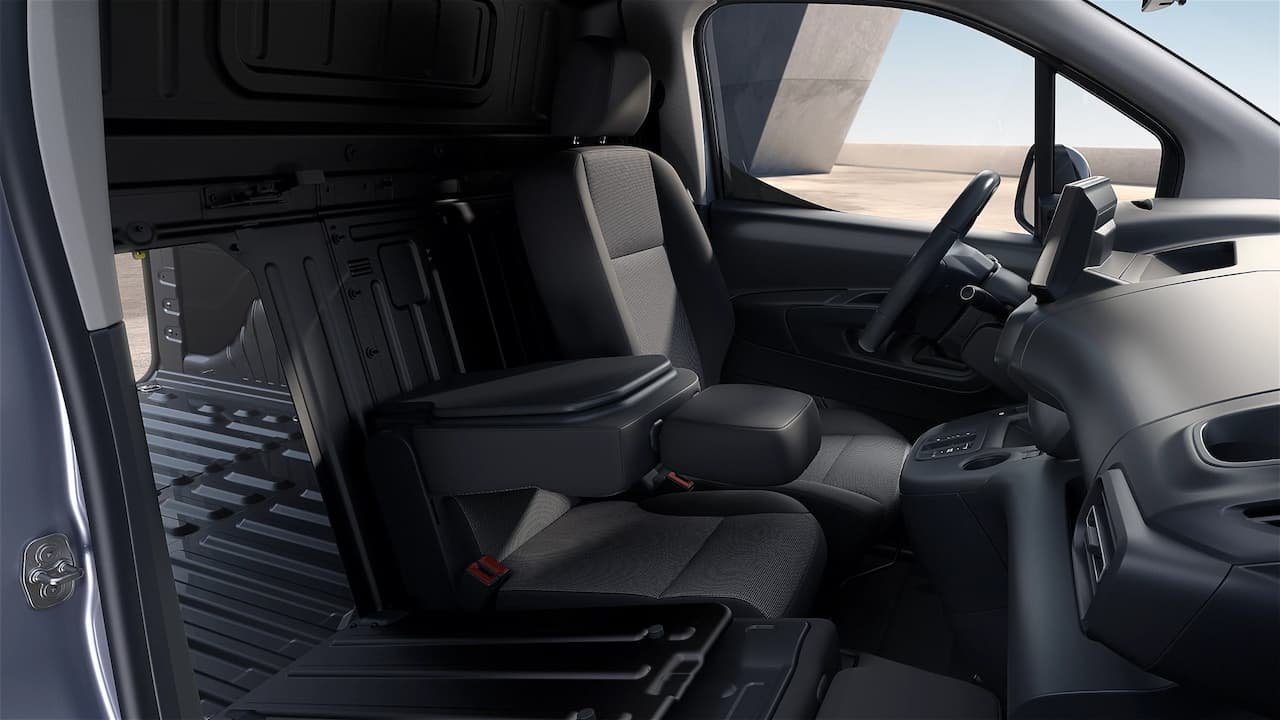 Gagnez en volume utile, en longueur utile et transformez votre habitacle en bureau mobile avec le système Moduwork. Disponible uniquement sur la version 3 places du Nouveau PROACE CITY, le dossier central se transforme en tablette amovible pour transformer l'habitacle en bureau. Enfin, le système de trappe dans la cloison et le siège avant latéral rabattable permettent de gagner 0,5m3 de volume utile et 1,2m de longueur utile.